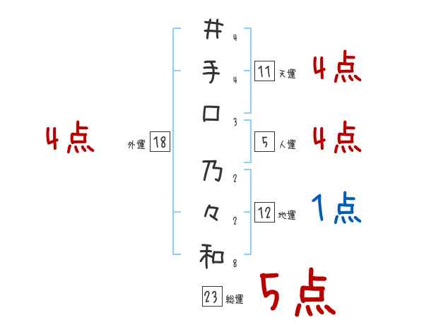 外運![]() | 井手口乃々和さんの外運は18画の4つ星!情熱的で剛気。忍耐力があり信頼される。 生活面を象徴する運勢です。外部から受ける影響力を表し、結婚運、家庭運や職場、環境への順応性を表します。 |
