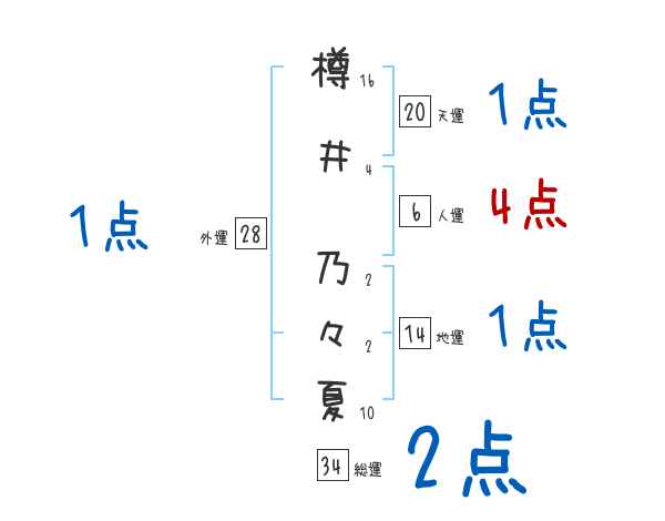総運![]() | 樽井乃々夏さんの総運は34画の2つ星!独創性に優れるが、自尊心が強く災難に注意しましょう。 あなたの人生を表す1番重要な運勢です。生涯を通じて影響する総合運となり、主に50歳以降の晩年期に影響を及ぼします。 |