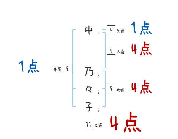 天運![]() | 中乃々子さんの天運は4画の1つ星!感情が不安定で苦労するかも。周囲との協調を心掛けましょう。 家系が持つ宿命的な運勢を表します。祖先から受け継いだ苗字ですので自分の力が及びません。家柄を象徴します。 |