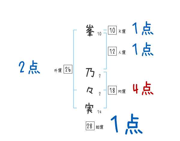 峯乃々実さんの画数の鑑定結果