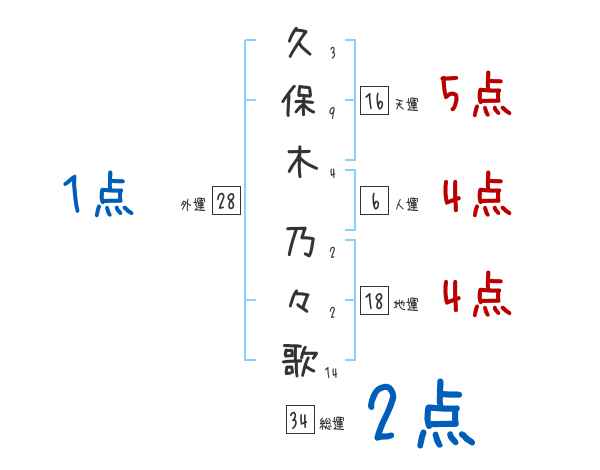 久保木乃々歌さんの画数の鑑定結果