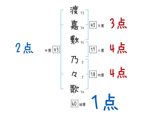 渡嘉敷乃々歌さんの画数の鑑定結果