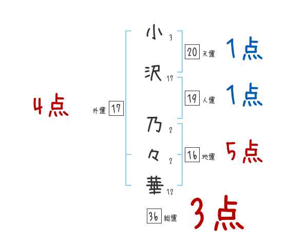 小沢乃々華さんの画数の鑑定結果