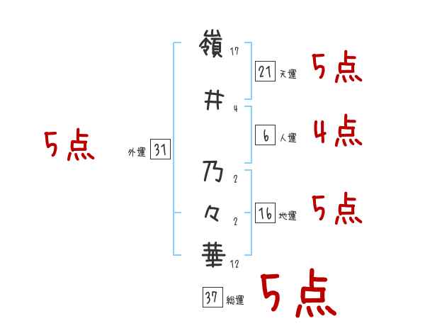嶺井乃々華さんの画数の鑑定結果