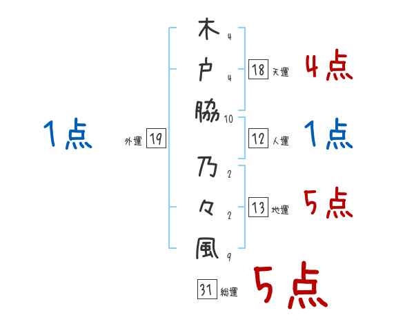 天運![]() | 木戸脇乃々風さんの天運は18画の4つ星!情熱的で剛気。忍耐力があり信頼される。 家系が持つ宿命的な運勢を表します。祖先から受け継いだ苗字ですので自分の力が及びません。家柄を象徴します。 |