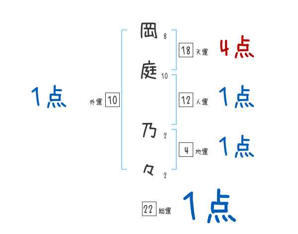 岡庭乃々さんの画数の鑑定結果