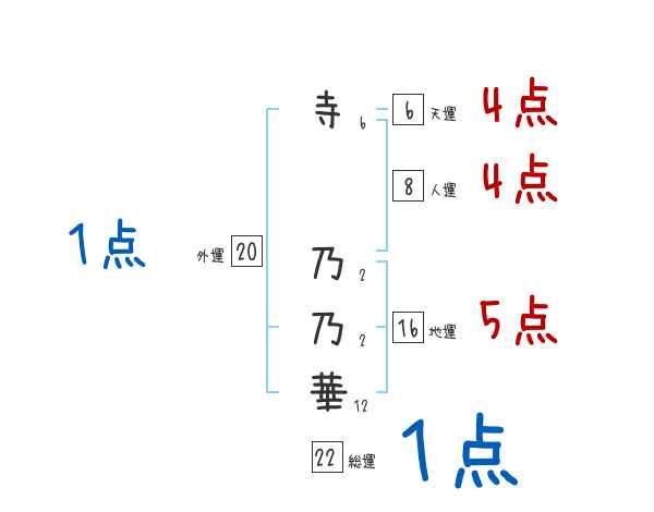総運![]() | 寺乃乃華さんの総運は22画の1つ星!努力することが苦手ないっぽう手先が器用。芸術性にも優れる。 あなたの人生を表す1番重要な運勢です。生涯を通じて影響する総合運となり、主に50歳以降の晩年期に影響を及ぼします。 |