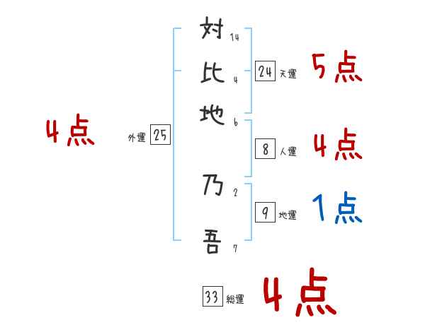 対比地乃吾さんの画数の鑑定結果