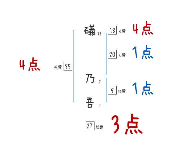 礒乃吾さんの画数の鑑定結果
