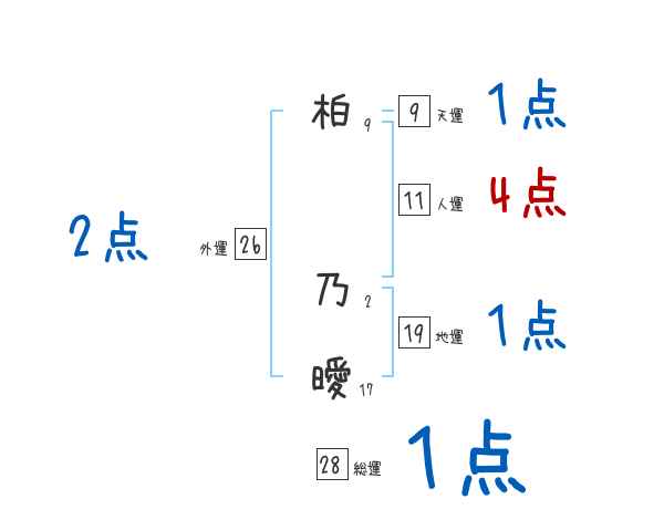 柏乃曖さんの画数の鑑定結果