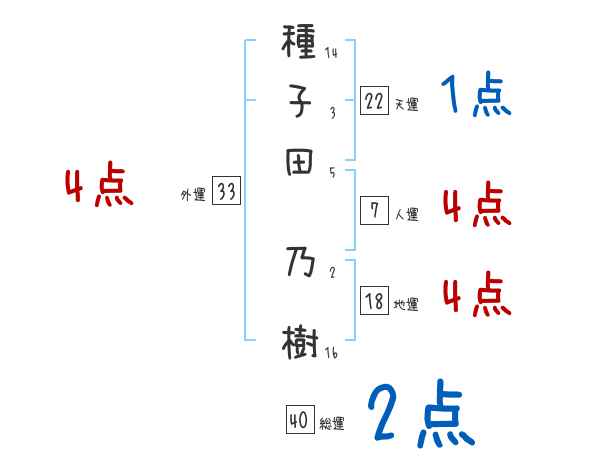天運![]() | 種子田乃樹さんの天運は22画の1つ星!努力することが苦手ないっぽう手先が器用。芸術性にも優れる。 家系が持つ宿命的な運勢を表します。祖先から受け継いだ苗字ですので自分の力が及びません。家柄を象徴します。 |
