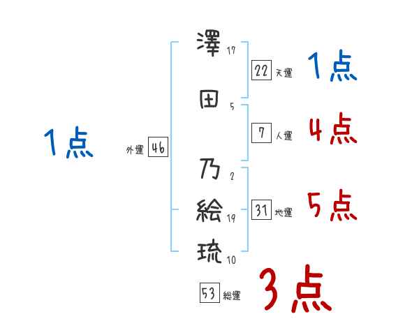 総運![]() | 澤田乃絵琉さんの総運は53画の3つ星!やや見栄っ張りで虚栄心がある。散財に注意。 あなたの人生を表す1番重要な運勢です。生涯を通じて影響する総合運となり、主に50歳以降の晩年期に影響を及ぼします。 |