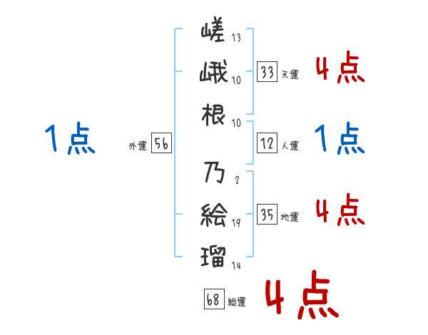 嵯峨根乃絵瑠さんの画数の鑑定結果