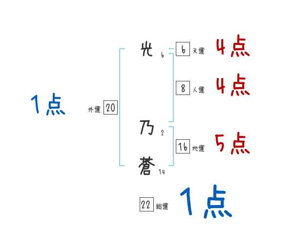 天運![]() | 光乃蒼さんの天運は6画の4つ星!慎重な努力家で信頼を得る。誠実な精神で向上心に優れる。 家系が持つ宿命的な運勢を表します。祖先から受け継いだ苗字ですので自分の力が及びません。家柄を象徴します。 |