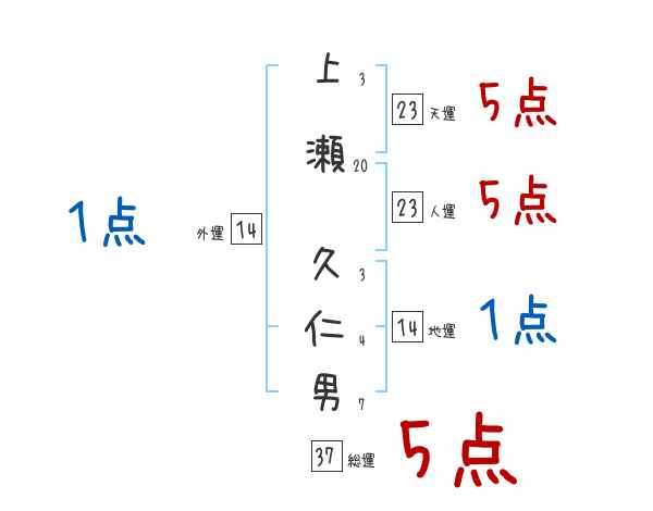 天運![]() | 上瀬久仁男さんの天運は23画の5つ星!想像力に優れ活力がある。一代で成功し名誉を手に入れる。 家系が持つ宿命的な運勢を表します。祖先から受け継いだ苗字ですので自分の力が及びません。家柄を象徴します。 |