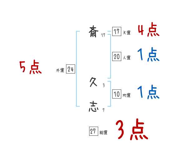 斎久志さんの画数の鑑定結果