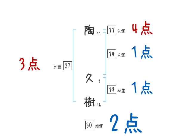 陶久樹さんの画数の鑑定結果