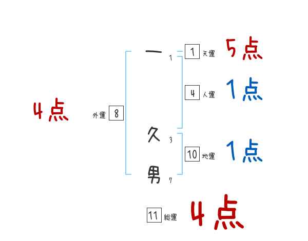 一久男さんの画数の鑑定結果