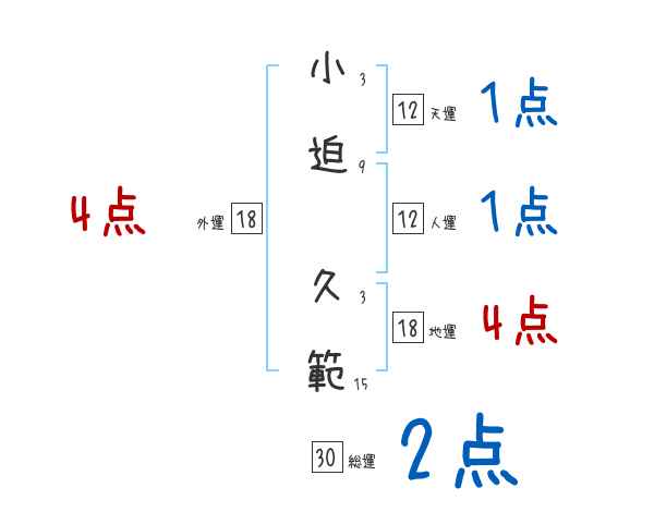 小迫久範さんの画数の鑑定結果