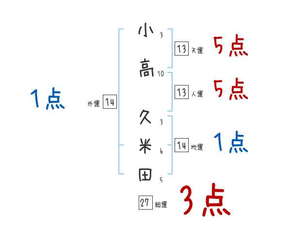小高久米田さんの画数の鑑定結果