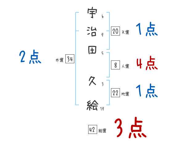 総運![]() | 宇治田久絵さんの総運は42画の3つ星!病気に注意。多芸であるが消極的でおとなしい。 あなたの人生を表す1番重要な運勢です。生涯を通じて影響する総合運となり、主に50歳以降の晩年期に影響を及ぼします。 |