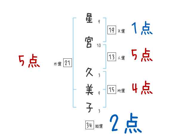 星宮久美子さんの画数の鑑定結果