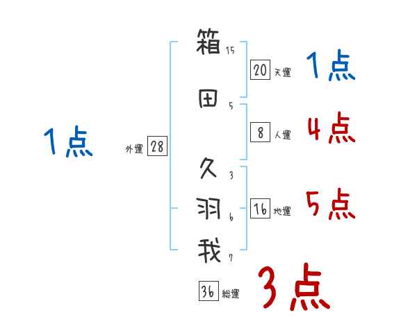 箱田久羽我さんの画数の鑑定結果