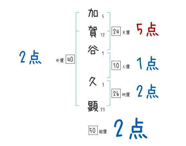 家系が持つ宿命的な運勢を表します。祖先から受け継いだ苗字ですので自分の力が及びません。家柄を象徴します。