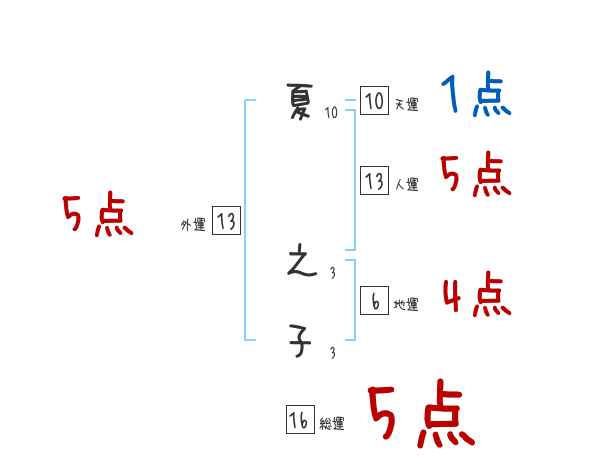夏之子さんの画数の鑑定結果