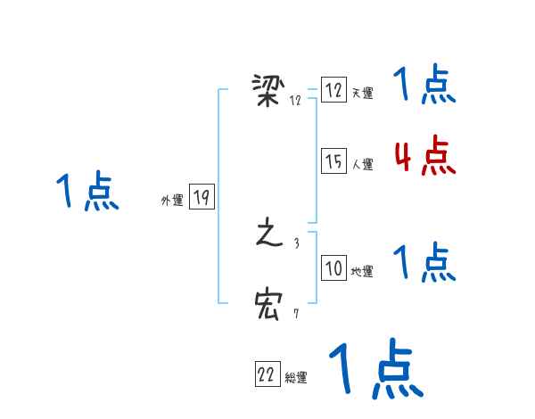 梁之宏さんの画数の鑑定結果