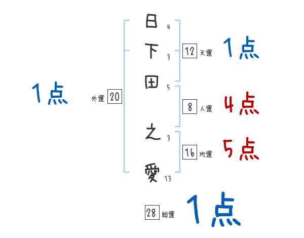 総運![]() | 日下田之愛さんの総運は28画の1つ星!家庭環境に注意。スポーツで活躍できる能力があるかも。 あなたの人生を表す1番重要な運勢です。生涯を通じて影響する総合運となり、主に50歳以降の晩年期に影響を及ぼします。 |