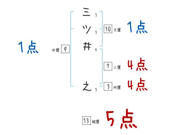 地運![]() | 三ツ井之さんの地運は3画の4つ星!活動的で才能に恵まれ、多くの信頼を得る。希望に満ち成長する。 個性を表す基礎的な運勢です。性格形成や対人関係、行動力など家庭環境に影響されます。主に誕生してから20歳くらいまでの若年期の運勢を表します。 |