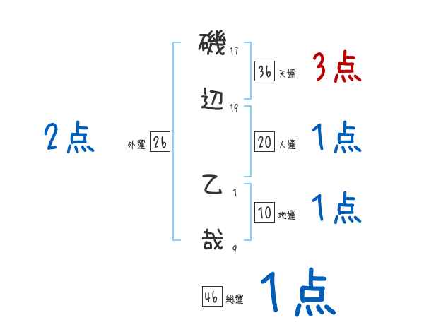 磯辺乙哉さんの画数の鑑定結果