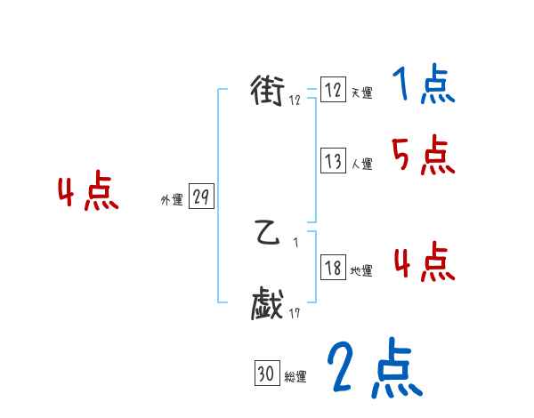 街乙戯さんの画数の鑑定結果
