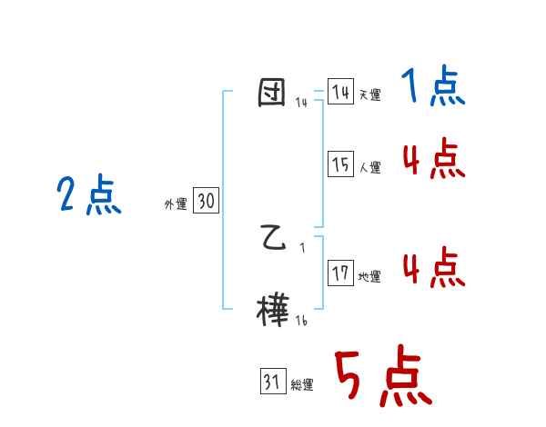 総運![]() | 団乙樺さんの総運は31画の5つ星!社交性があり判断力に優れる。順風満帆な人生で円満な生活。 あなたの人生を表す1番重要な運勢です。生涯を通じて影響する総合運となり、主に50歳以降の晩年期に影響を及ぼします。 |