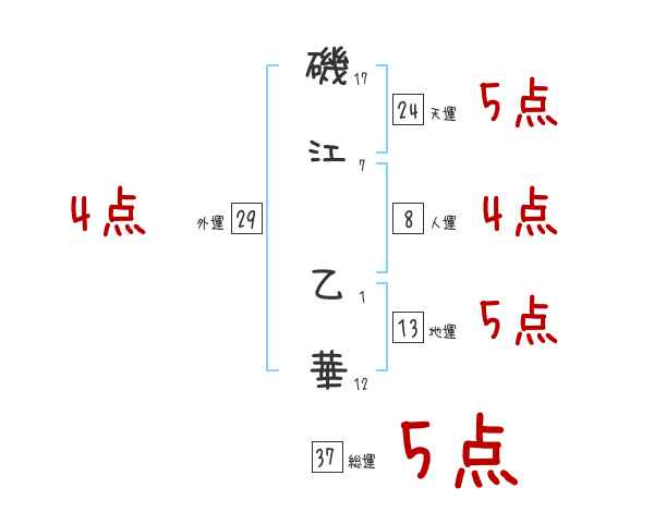 磯江乙華さんの画数の鑑定結果