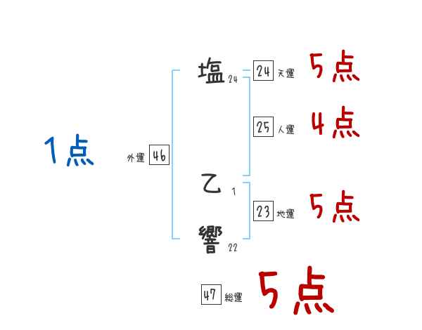 天運![]() | 塩乙響さんの天運は24画の5つ星!家庭運が良く順調な人生。金運にも恵まれる。 家系が持つ宿命的な運勢を表します。祖先から受け継いだ苗字ですので自分の力が及びません。家柄を象徴します。 |