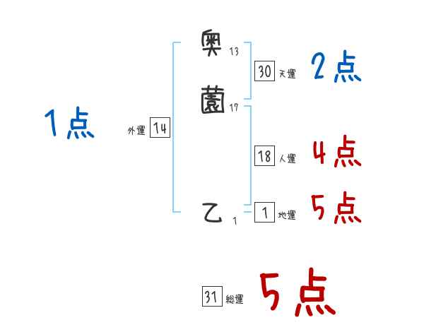 奥薗乙さんの画数の鑑定結果