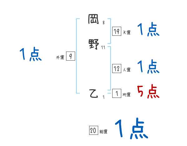 岡野乙さんの画数の鑑定結果