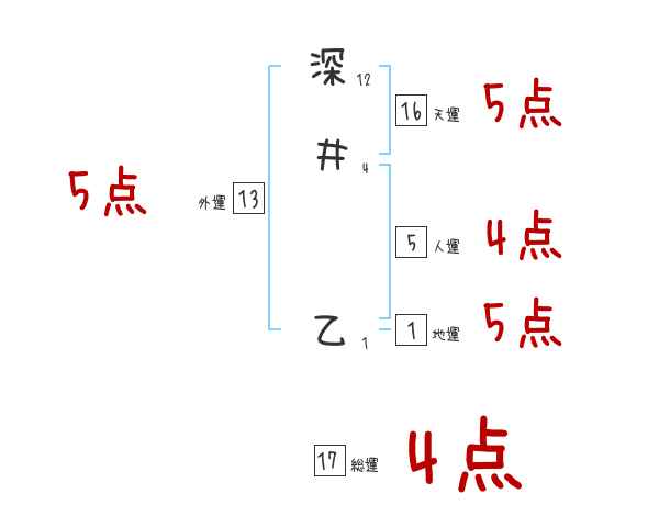 深井乙さんの画数の鑑定結果