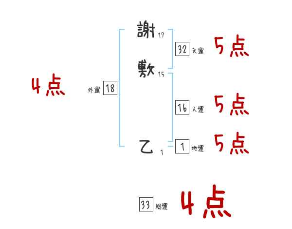 謝敷乙さんの画数の鑑定結果