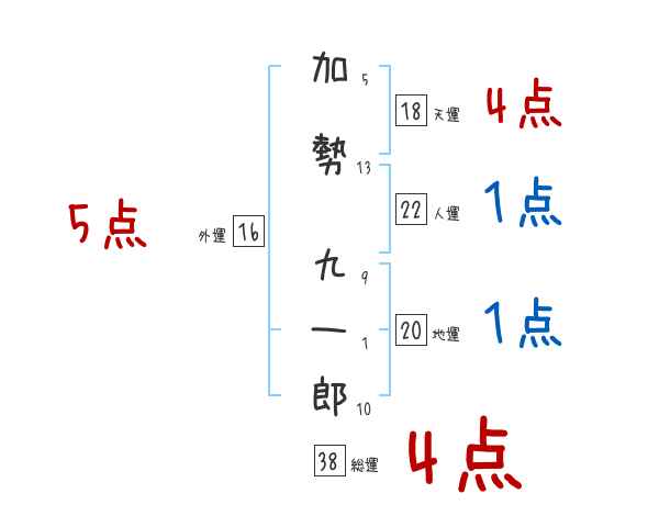 加勢九一郎さんの画数の鑑定結果