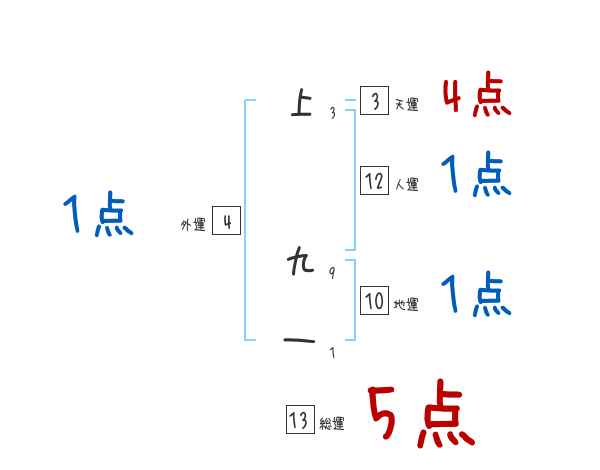 総運![]() | 上九一さんの総運は13画の5つ星!才能に恵まれ人気がある。名声を手に入れる。円満な人生。 あなたの人生を表す1番重要な運勢です。生涯を通じて影響する総合運となり、主に50歳以降の晩年期に影響を及ぼします。 |