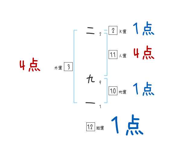 人運![]() | 二九一さんの人運は11画の4つ星!着実に富や地位を得る幸運な人生。 性格や才能などを表す2番目に重要な運勢です。人間関係や協調性、社会的な成功に影響します。主に20歳から50歳ぐらいまでの中年期の運勢を表します。 |