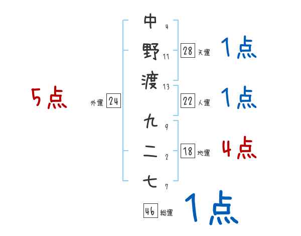 天運![]() | 中野渡九二七さんの天運は28画の1つ星!家庭環境に注意。スポーツで活躍できる能力があるかも。 家系が持つ宿命的な運勢を表します。祖先から受け継いだ苗字ですので自分の力が及びません。家柄を象徴します。 |