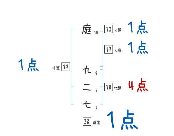 庭九二七さんの画数の鑑定結果
