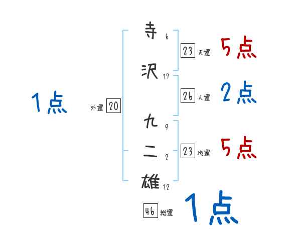 寺沢九二雄さんの画数の鑑定結果