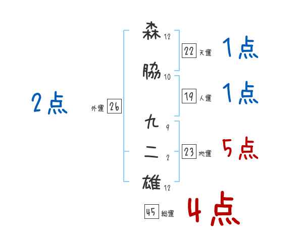 森脇九二雄さんの画数の鑑定結果