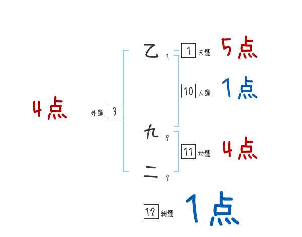 人運![]() | 乙九二さんの人運は10画の1つ星!不安を感じやすい傾向。ストレスを抱えないように注意しましょう。 性格や才能などを表す2番目に重要な運勢です。人間関係や協調性、社会的な成功に影響します。主に20歳から50歳ぐらいまでの中年期の運勢を表します。 |