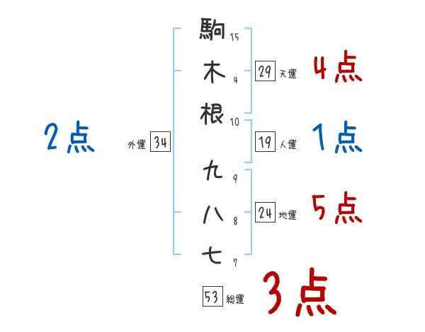 駒木根九八七さんの画数の鑑定結果